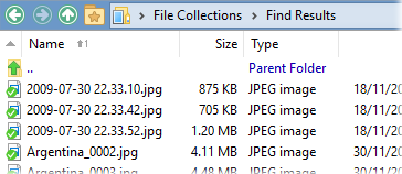 File collections are used by the Find Files and Duplicate File Finder functions to display the results of the search. When you perform a search with these tools, any matching files are automatically added to the specified file collection. You can see an example of this in the above screenshot - a search for image files returned pictures stored in two different locations, but in the results collection they are presented as if they were all in the same place.